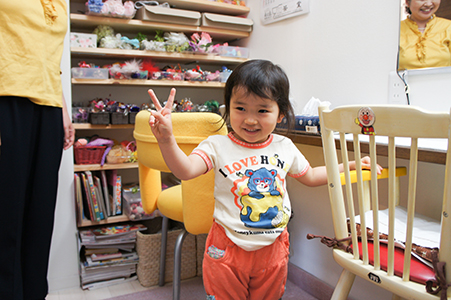 さよちゃんは スタッフの声かけを しっかり聞いてくれてます 「 ここにいてね 」 「 うん 」 じっと動きません