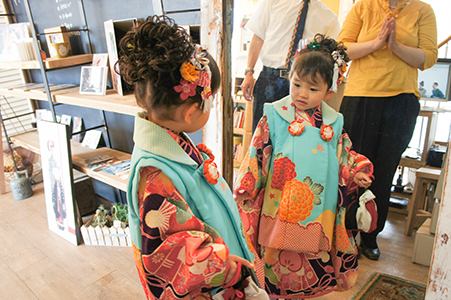 「 お花持って見て 」 「 うん 」 ずっと持ってくれてます お話がきちんと聞けるんです お子さん 一人一人みんな 性格が違います さよちゃんの性格です 次は着物に着替えて 変身です
